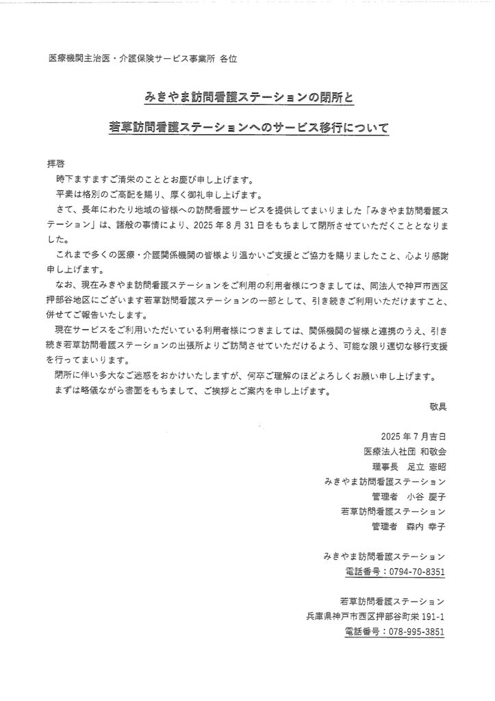 若草訪問看護ステーションのサテライトとして事業を展開します。